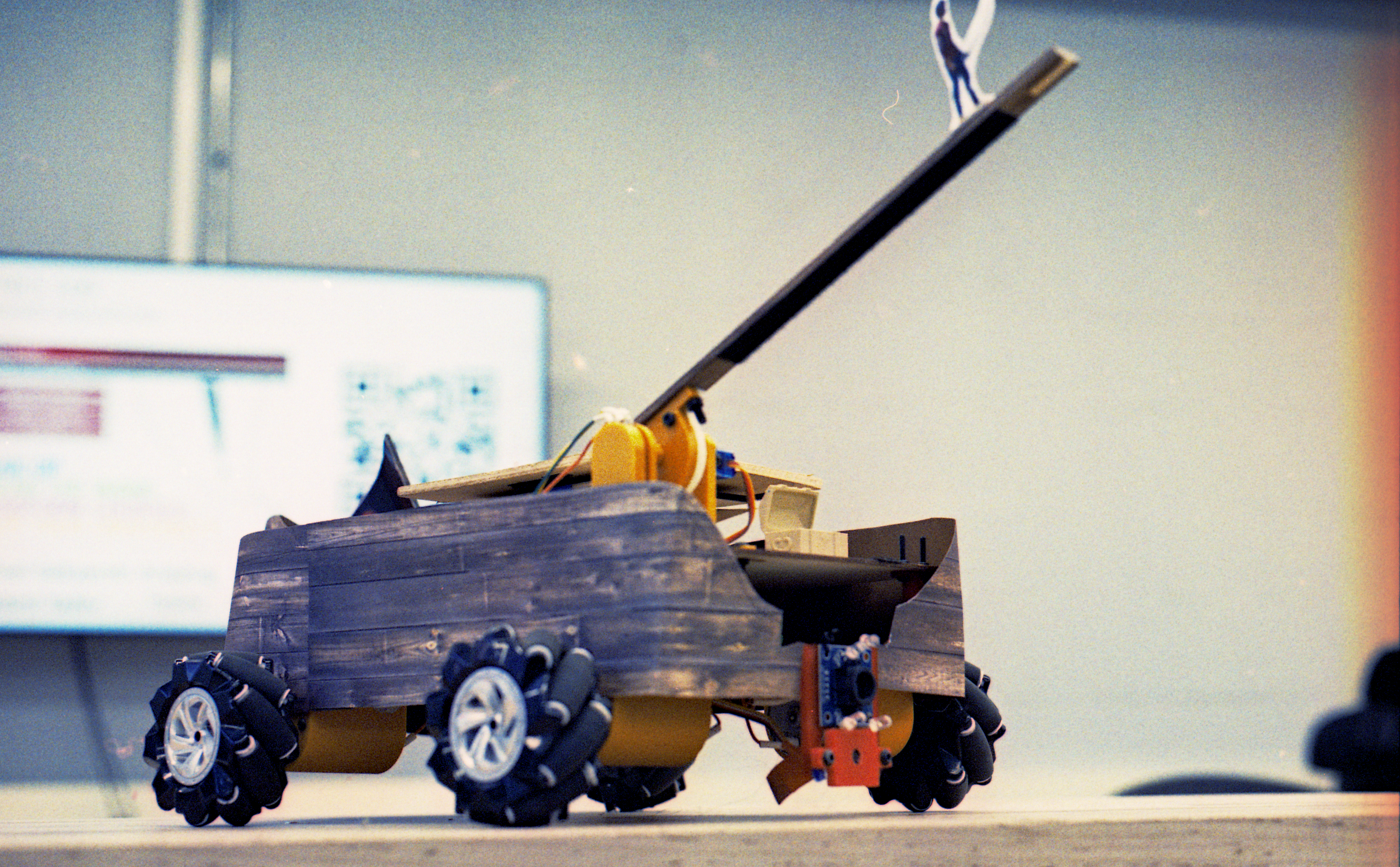 In ENES100 (Intro. to Engineering Design), I led a team of 8 students to design and prototype an autonomous robot that scanned the dimensions of a box, identified the red (broken) side, deposited a marker facing the side, and traversed around obstacles with a 100% success rate.