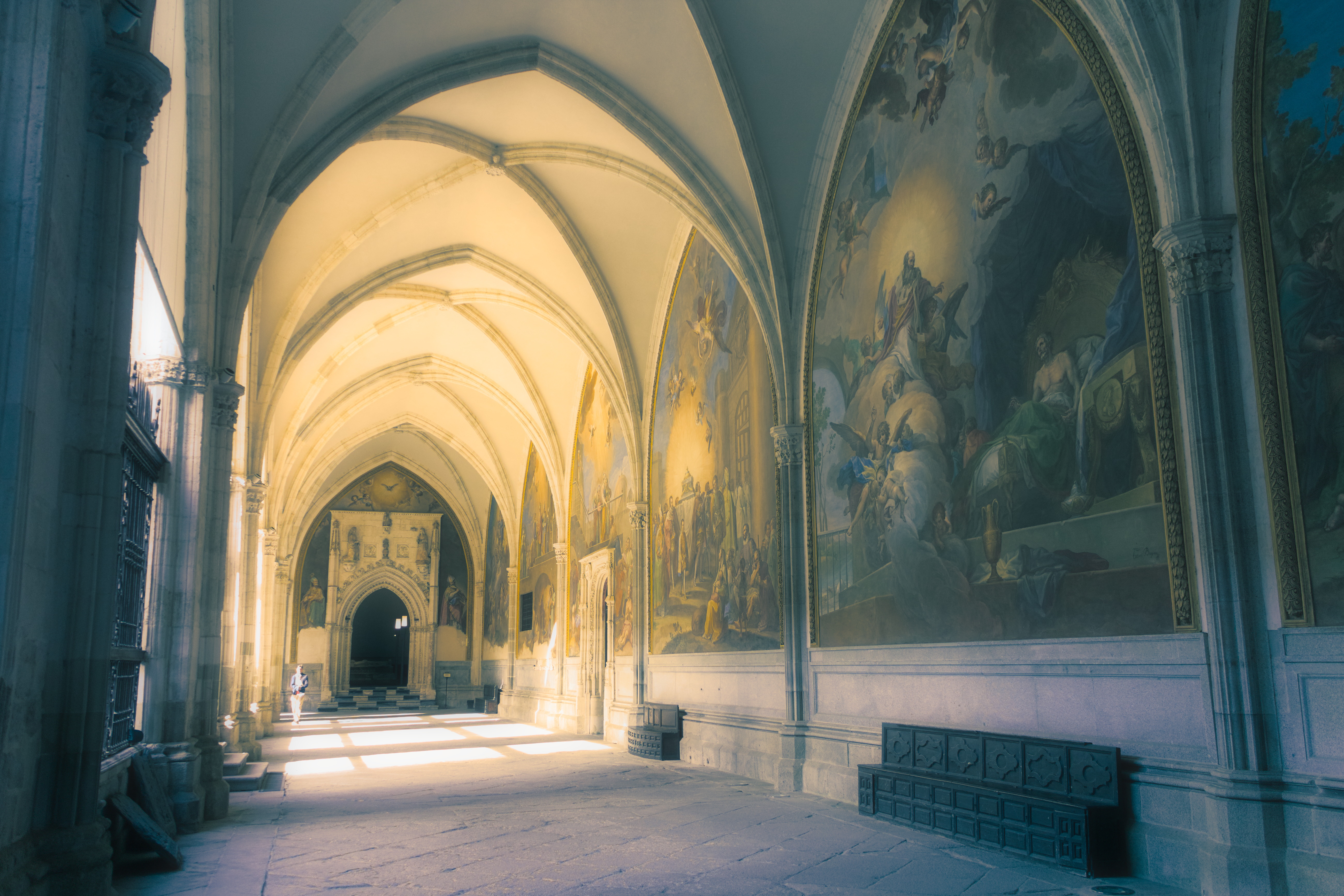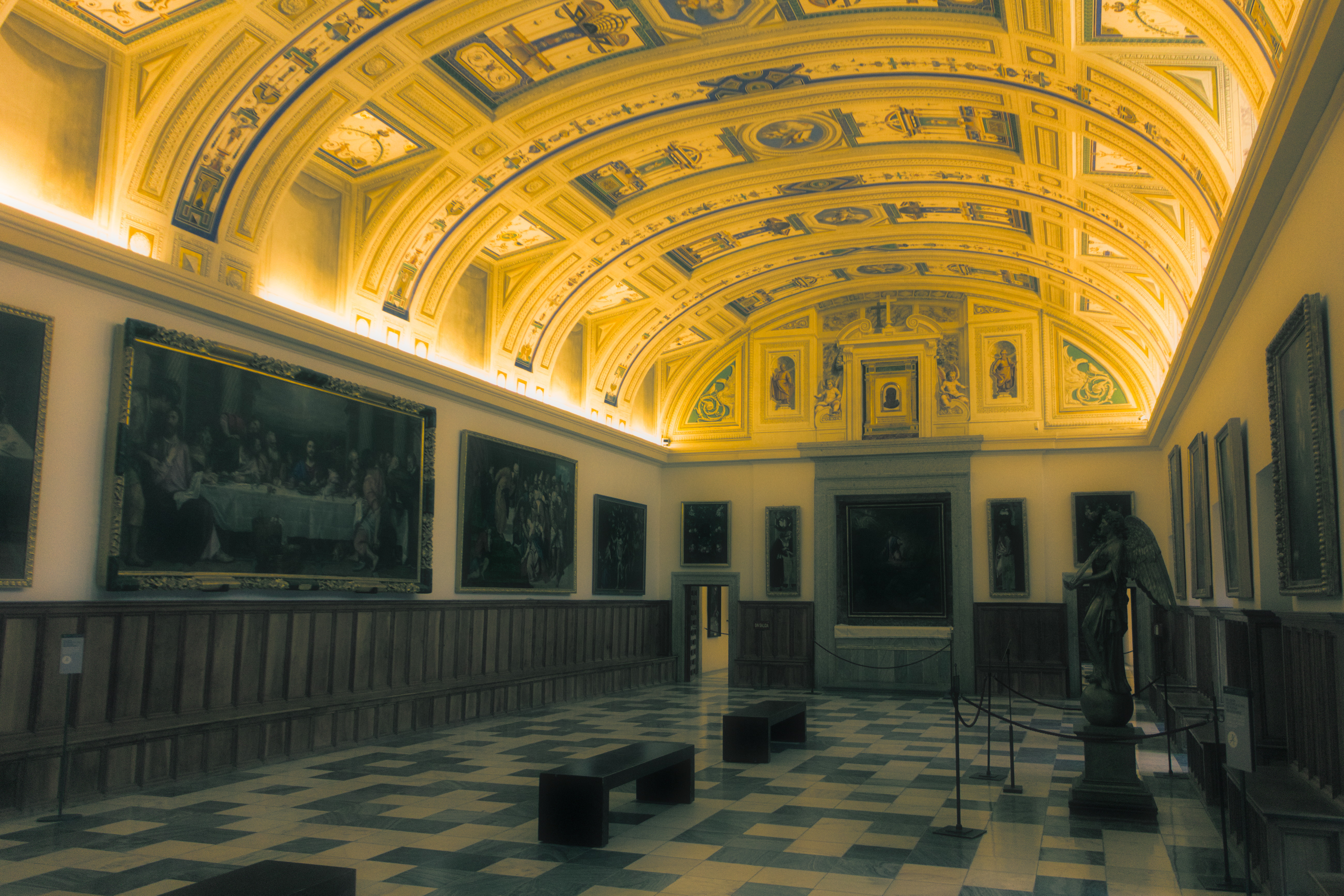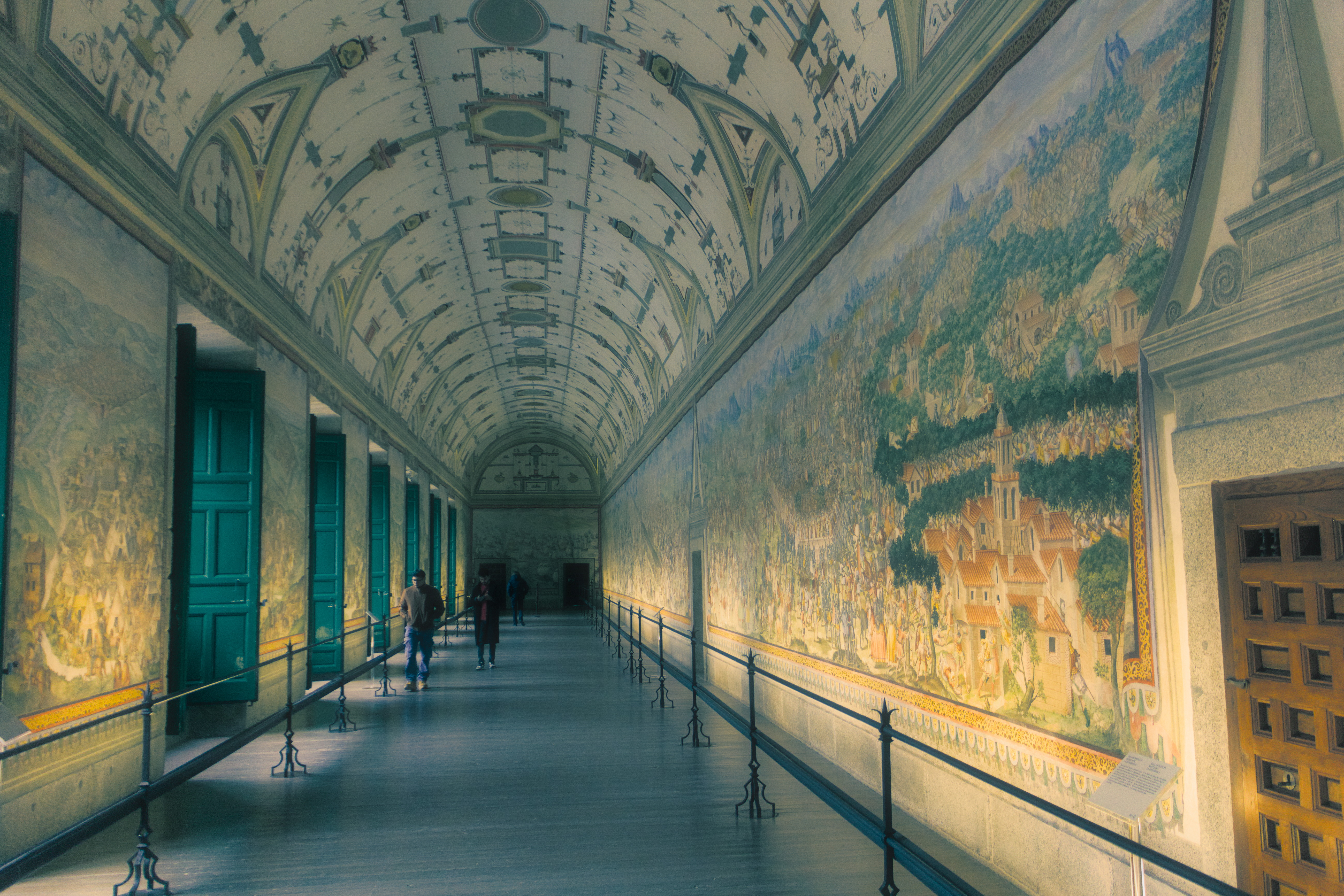My last day, I went to El Escorial. I thought all the schoolkids out front, playing ball and chatting, were there on a field trip, until they disappeared inside a secondary entrance meant for the school built into the complex. I realized then that the museum would tour through just a fraction of this immense monastery, palace, pantheon, and college all built as one.